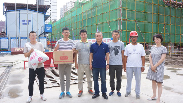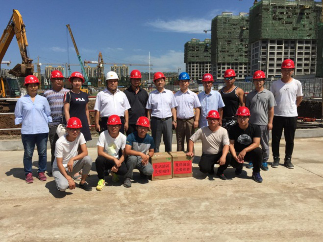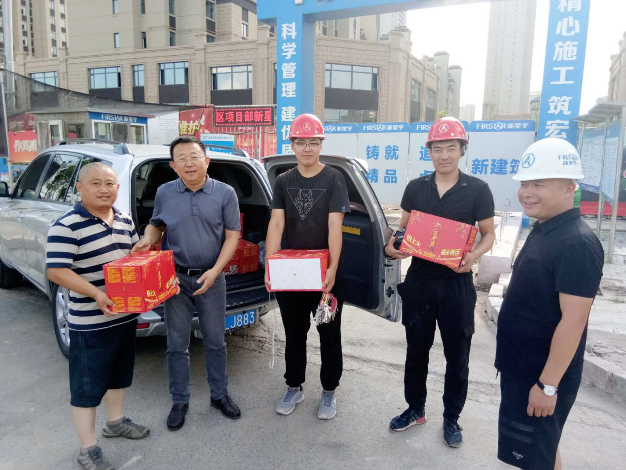 魏廣政總經理代表公司為新星宇廣場郵儲項目部送上解暑食品。