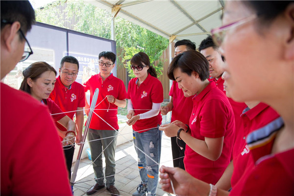 下午活動中的一項重要環節是拓展游戲,在分組對抗中,三組的隊長來自黨員先鋒的獲得者,并通過自薦的方式產生,體現了黨員的先鋒模范帶頭作用。對抗中,各位黨員充分發揮自己的智慧和行動力,積極為團體的榮譽而戰。