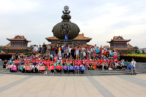 17日清晨,6臺大巴車從長春各個區域出發,于萬壽寺石牌坊前匯合,開始了整個祈福活動。由于參加活動的業主較多,為了辨識我們的業主并及時跟隨保證安全,我們為每位業主發放一張“身份貼”,贏時管家全程持項目引導旗,便于業主在行進過程中找到自己的隊伍。