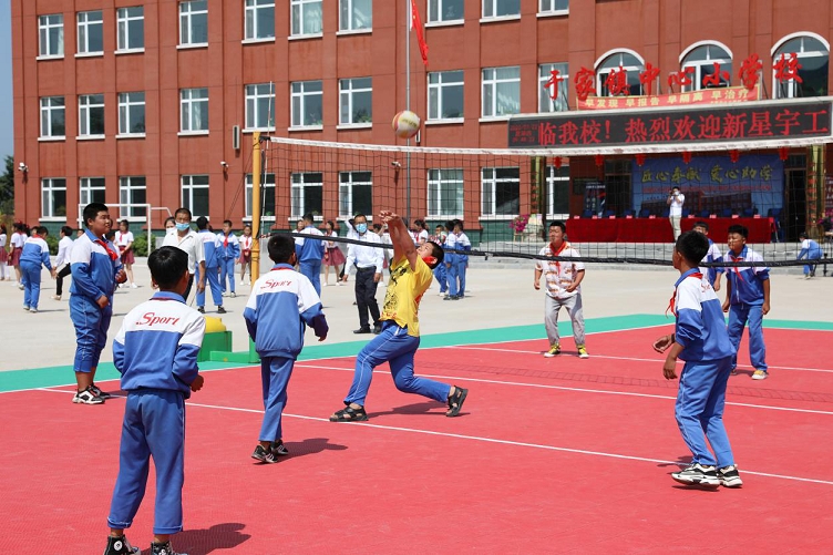 2020年7月2日上午10時,新星宇工建集團愛心助學捐贈儀式在于家鎮中心小學拉開帷幕。榆樹市教育局副局長胡萬國,榆樹市于家鎮鎮長王志遠,安全信訪科科長史巖出席了本次捐贈儀式。新星宇工建集團總經理趙洋,人力行政中心總監趙翠翠,房建三公司總經理魏繼峰作為助學代表,向學校捐贈了籃球/排球兩用球場、花池護欄和多功能書柜、圖書讀物等。