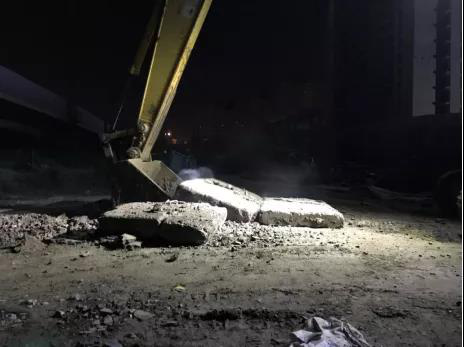 工建集團房建三公司凱旋家佳項目部作為先頭部隊,除提供了項目現場原有應急物資外,還出動了兩輛勾機,拆除項目路面硬化,短短兩個小時內就籌備了100多塊裝配式混凝土路面板,裝滿了七輛大卡車。