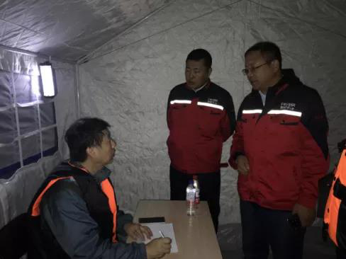 13日晚23時,載有工建集團第一批應急物資的七輛卡車,在副總指揮孫彥波、疏導協調組組長曲大鵬(工建集團工程管理中心經理)、前線組組長賀鑫(房間三公司安全管理部經理)、后勤保障組毛廣勝、孫鑠等人的帶領下,發往前線,將工建集團的抗洪物資第一時間運往搶險一線。