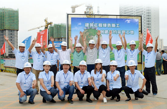 會議內容第一項,就是全體參會單位共同觀摩由新星宇建安公司宏宇分公司承建的廣澤紅府項目二期施工現場并學習經驗。該項目因綠色施工和現場出色的揚塵治理得到了延邊州州住房和城鄉建設局的高度肯定。據宏宇公司經理張守輝、項目負責人袁海臣介紹,項目在建造過程中,一致秉承"建筑工程綠色施工,創建節約環保工地"的理念,不僅對工程質量嚴格把關,更把對施工現場及周邊環境的監管保護作為日常的工作重點去抓,并為此做了大量的工作。也正是因為這樣,項目才得到了業界和政府部門的高度評價。在會議上,袁海臣也就施工及治理的相關經驗向與會單位進行了詳細的介紹和分享。